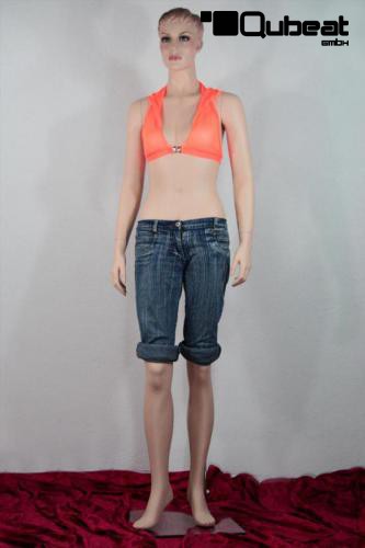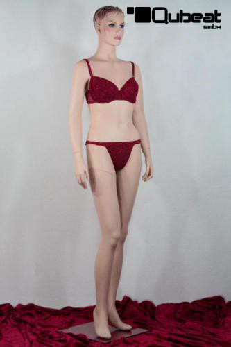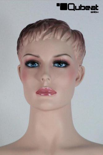 Wir bieten hier eine besonders schöne weibliche Schaufensterpuppe in der klassischen Hautfarbe an. Das sehr liebevoll, von Hand kolorierte Gesicht wird viele Blicke auf sich ziehen. Darüber hinaus ist auch das Haar modelliert und lackiert, wodurch das Tragen einer passenden Perücke nicht zwingend notwendig wird. Die klassische Pose zeugt von viel Geschmack und macht diese Figur zu einem idealen Präsentationsobjekt für jede Art von Kleidung.