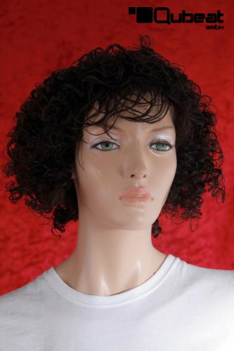 Schwarze, lockige Perücke