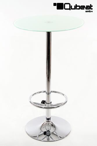 Bistro-Tisch mit hochwertiger Glas-Tischplatte und Fußstütze. Geeignet für den privaten und gewerblichen Bedarf. Ideal für Partykeller, Imbiss, Bistro oder Dönerladen.