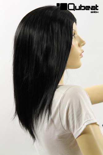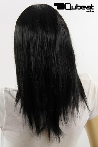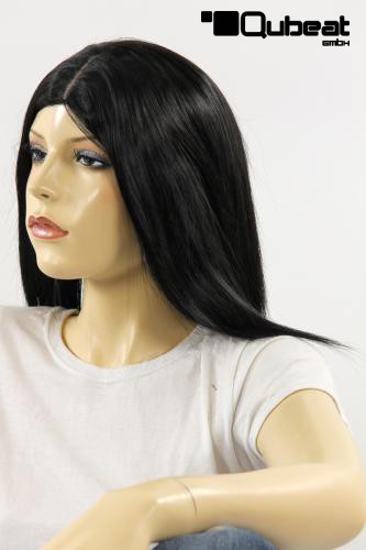Schwarze, lange Frauenperücke mit Mittelscheitel